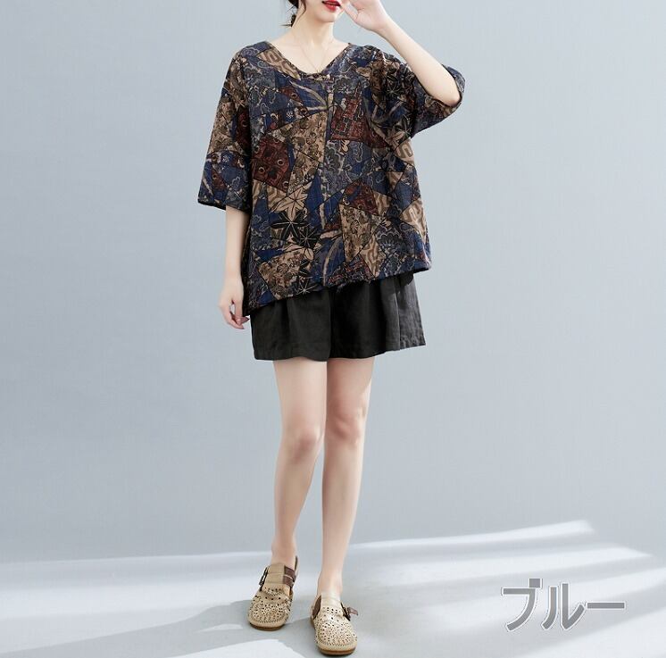 【春夏新作】ファッショントップス♪ブルー/ブラウン2色展開◆