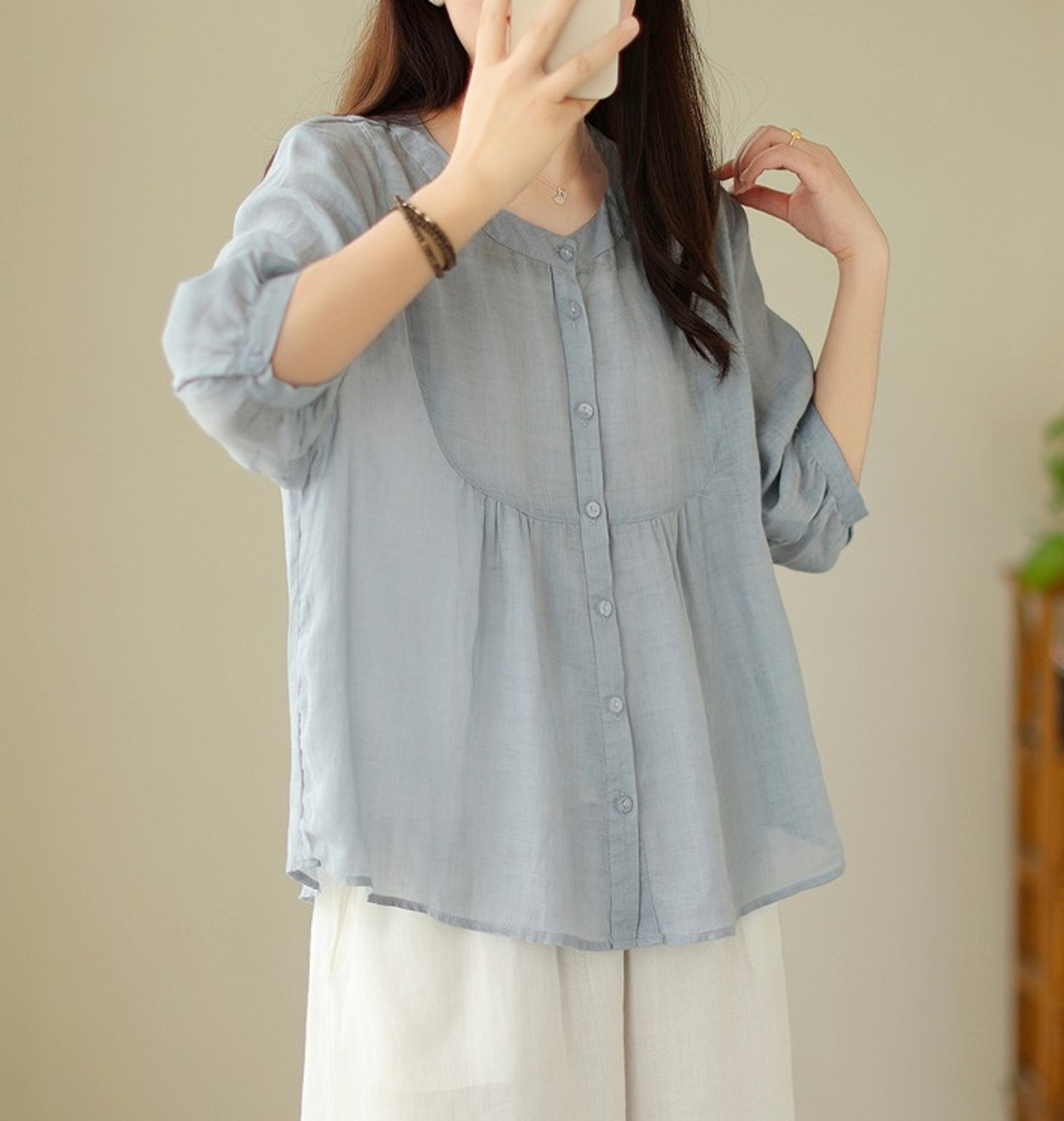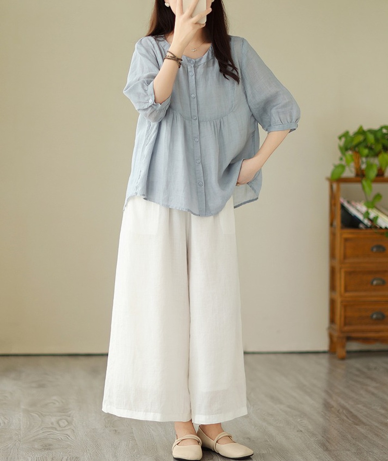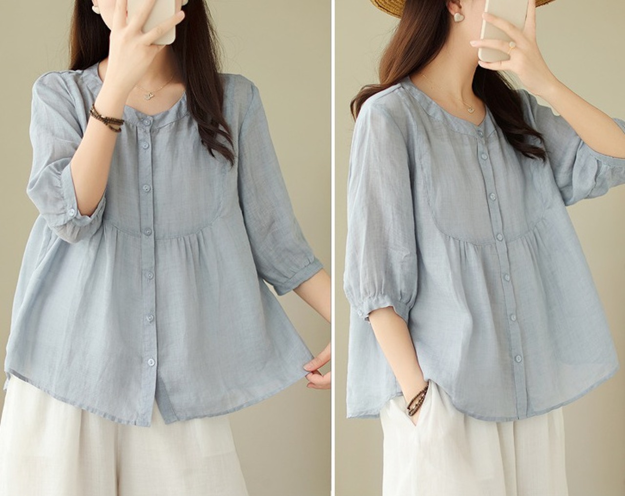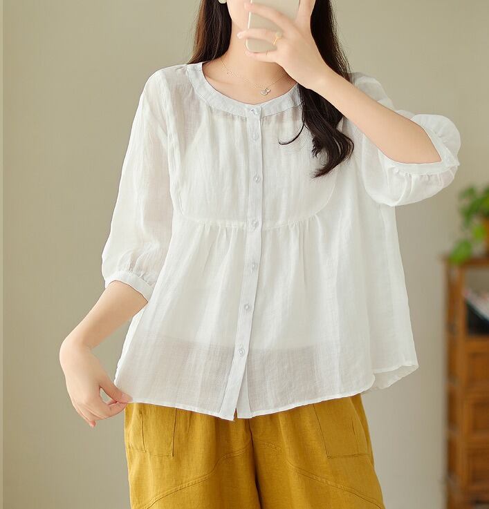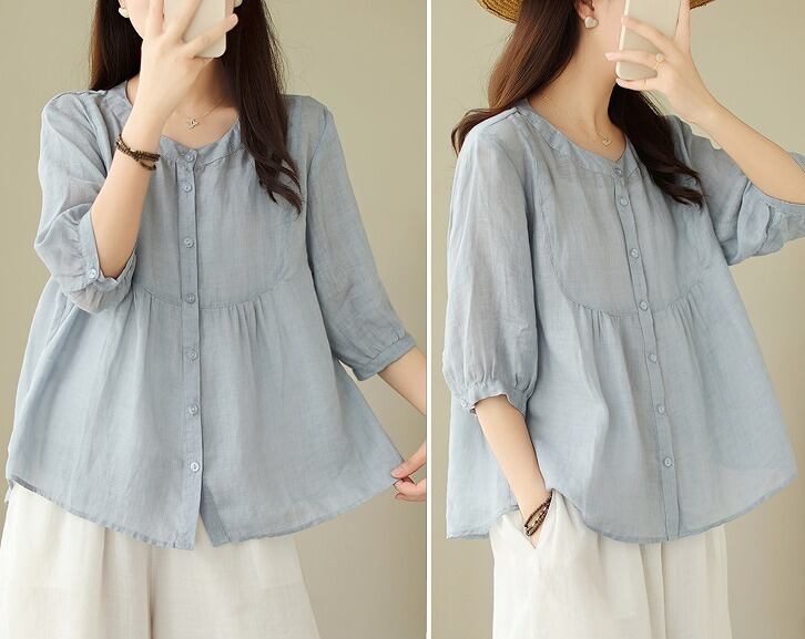 【春夏新作】ファッショントップス♪ホワイト/ブルー2色展開◆