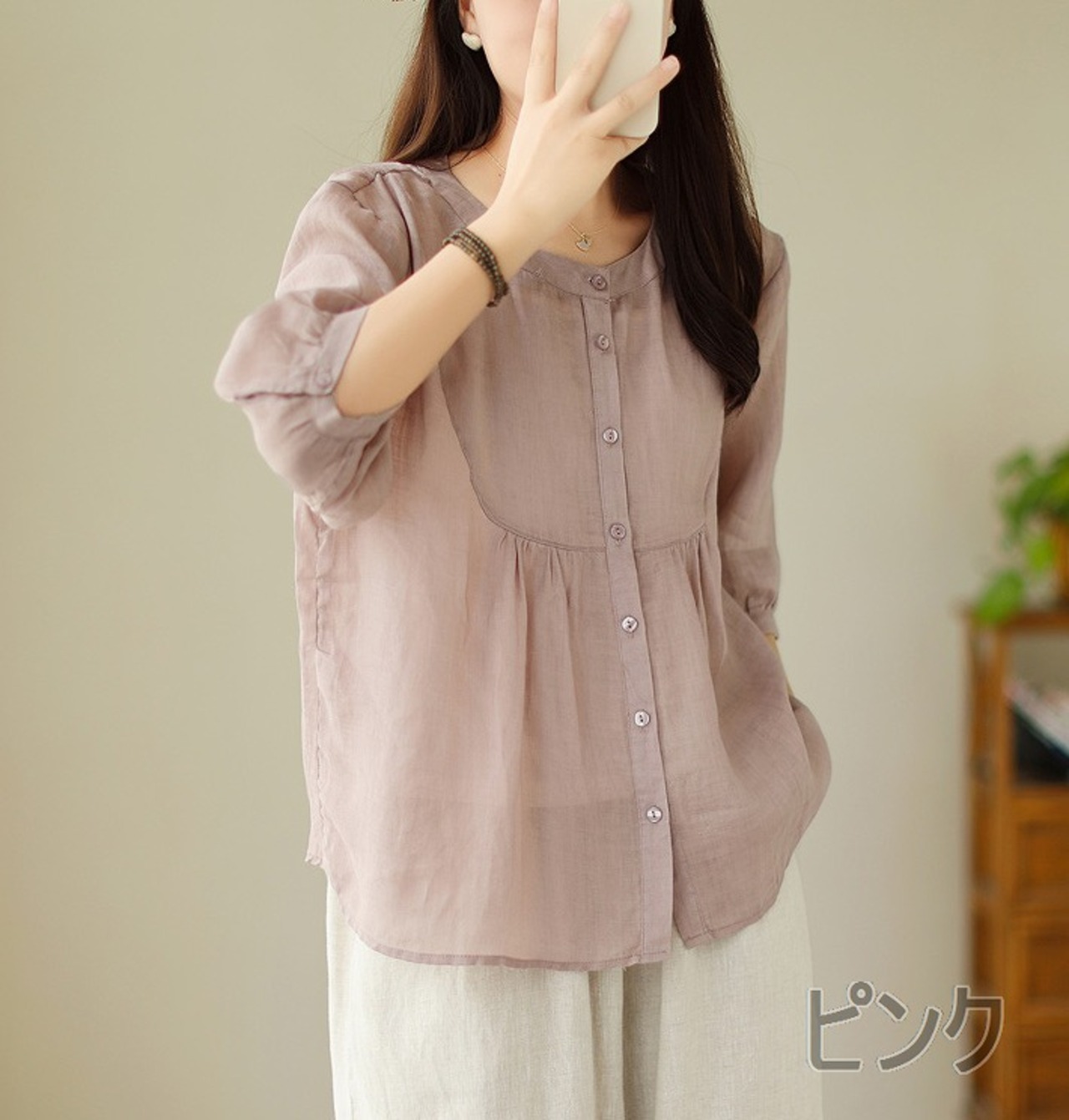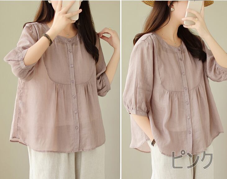 【春夏新作】ファッショントップス♪ピンク/カーキ/グリーン3色展開◆