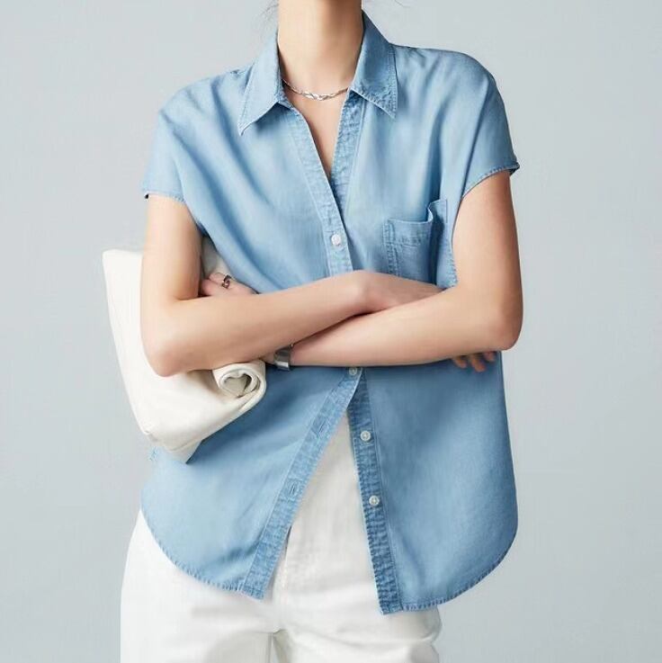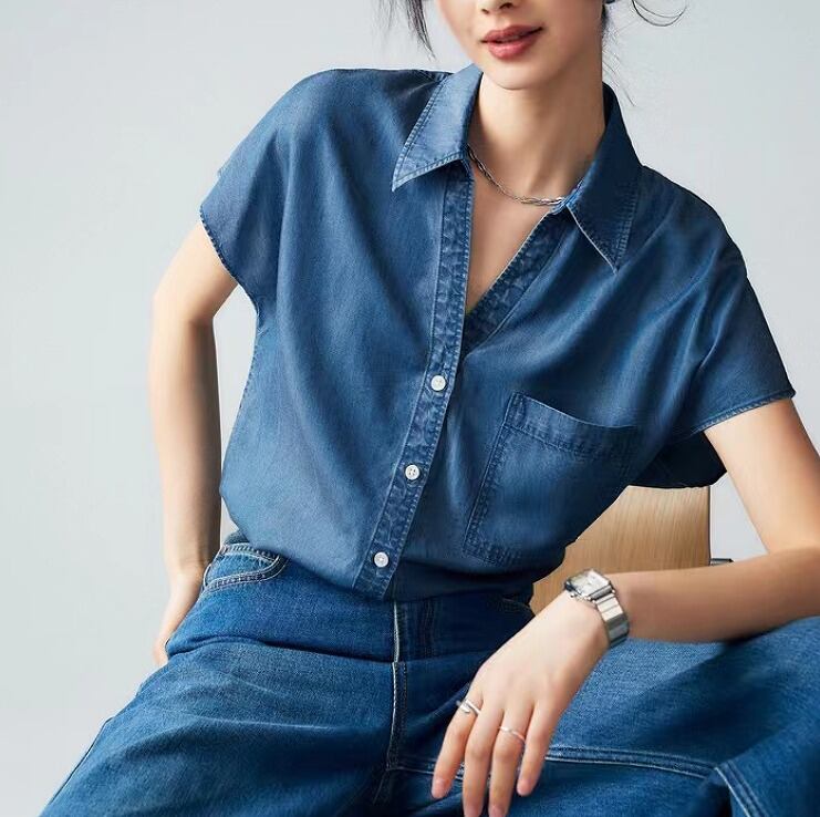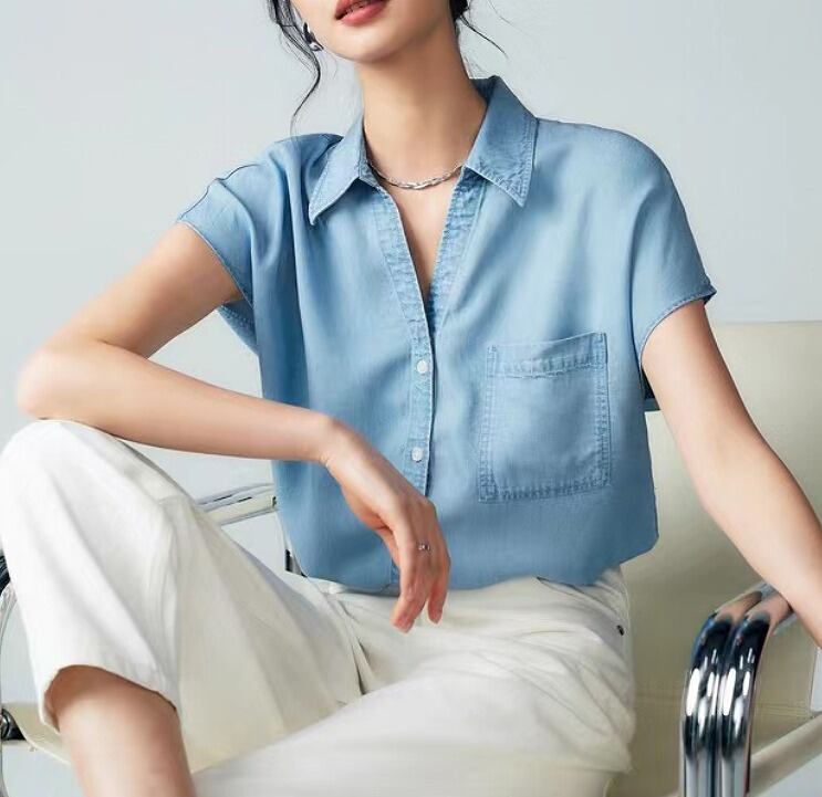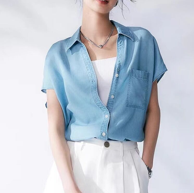 【春夏新作】ファッショントップス♪ライトブルー/ダークブルー2色展開◆