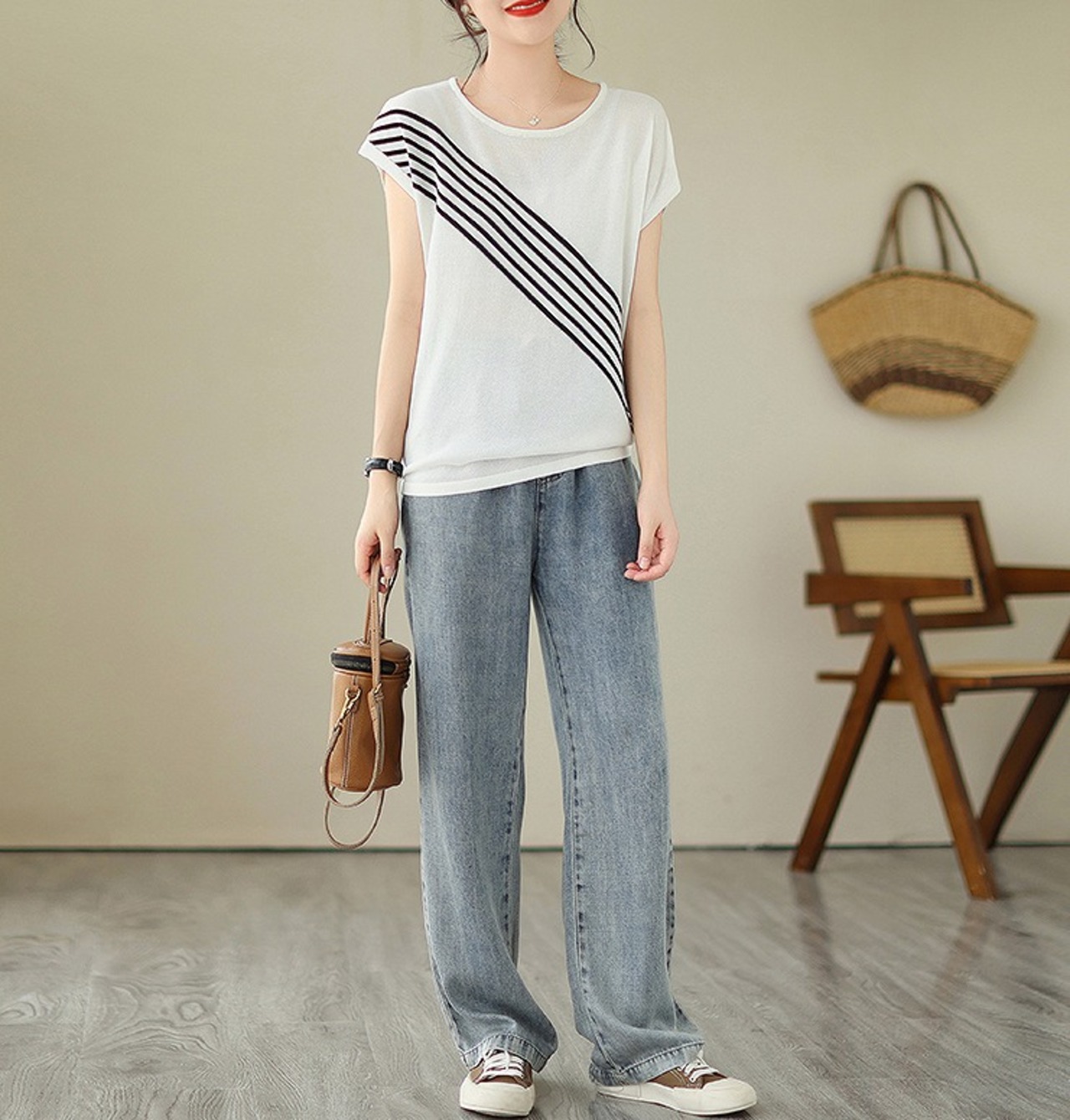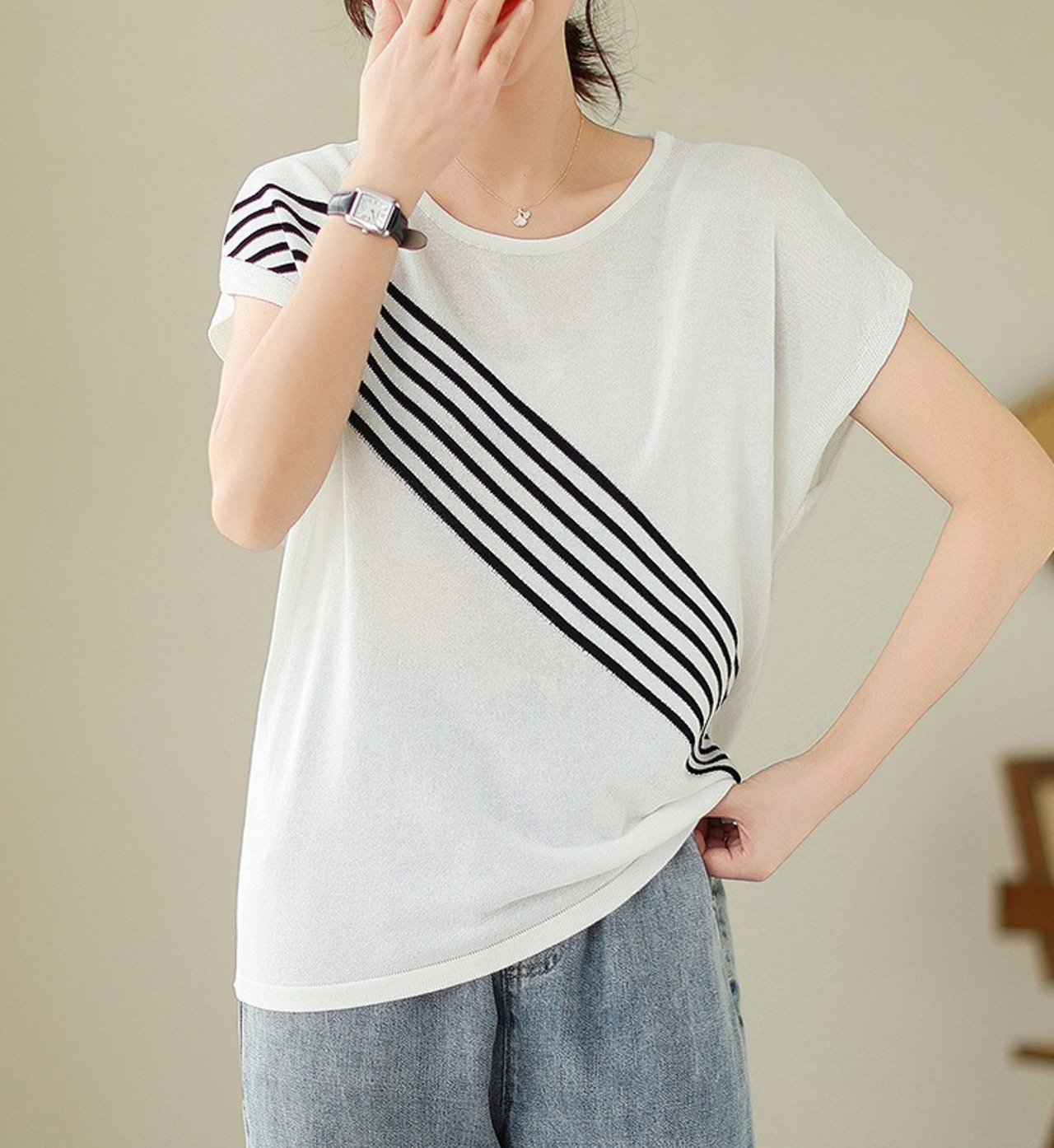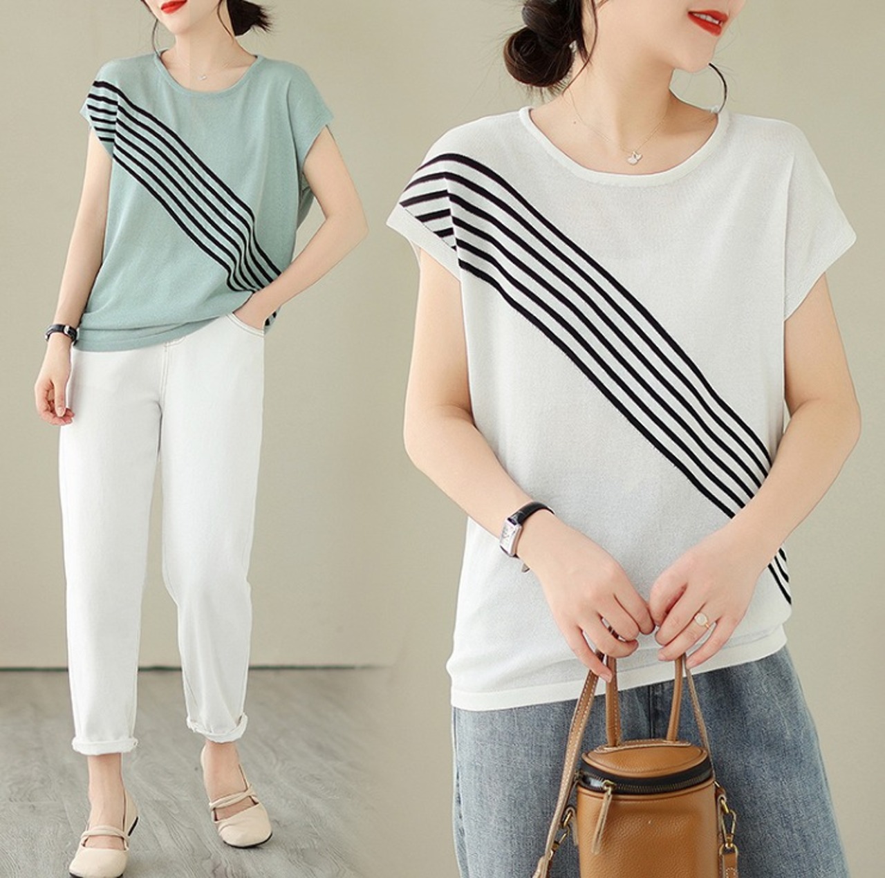【春夏新作】ファッショントップス♪ホワイト/グリーン2色展開◆