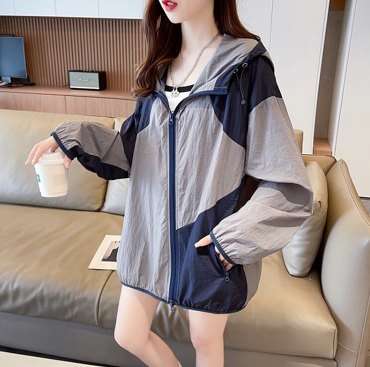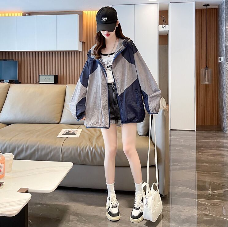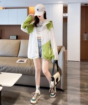 【春夏新作】日焼け防止シャツファッショントップス♪グリーン/ブルー2色展開◆