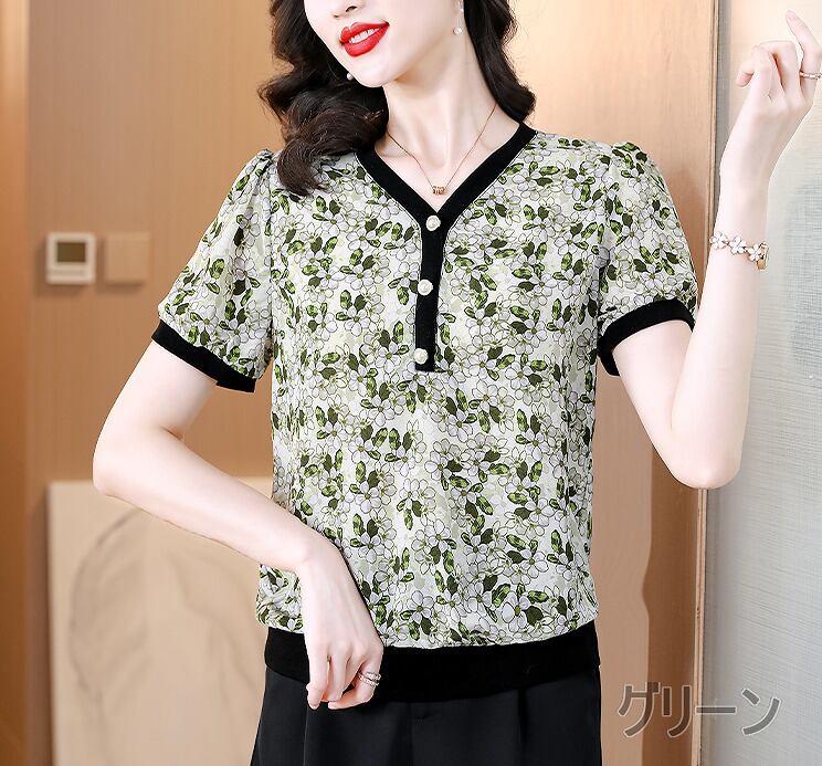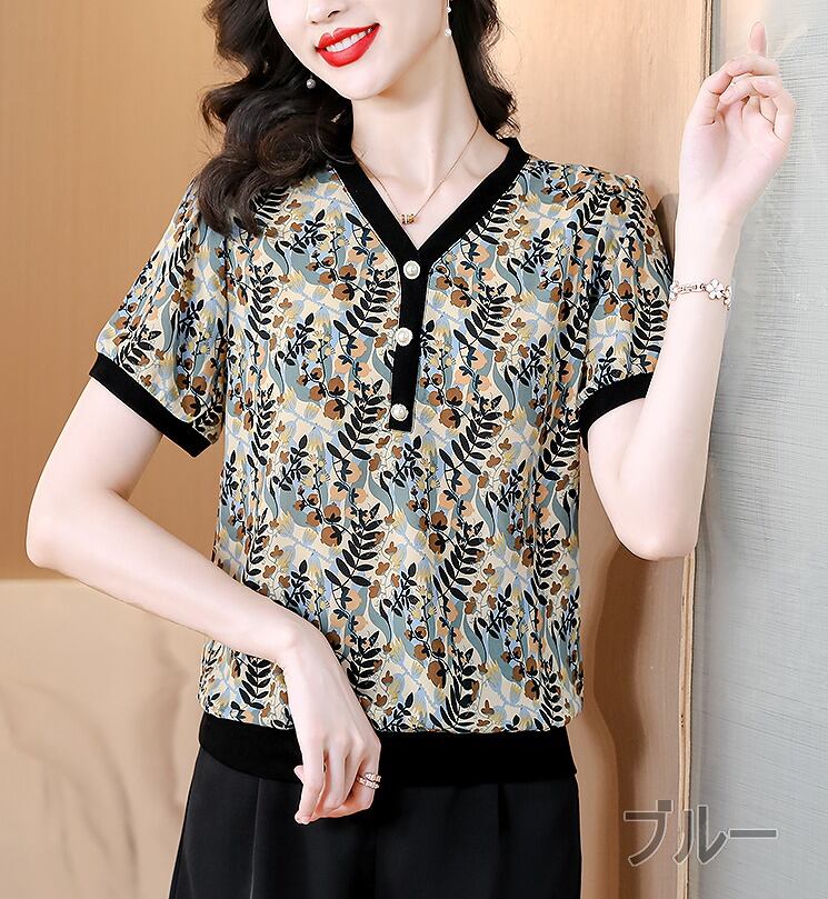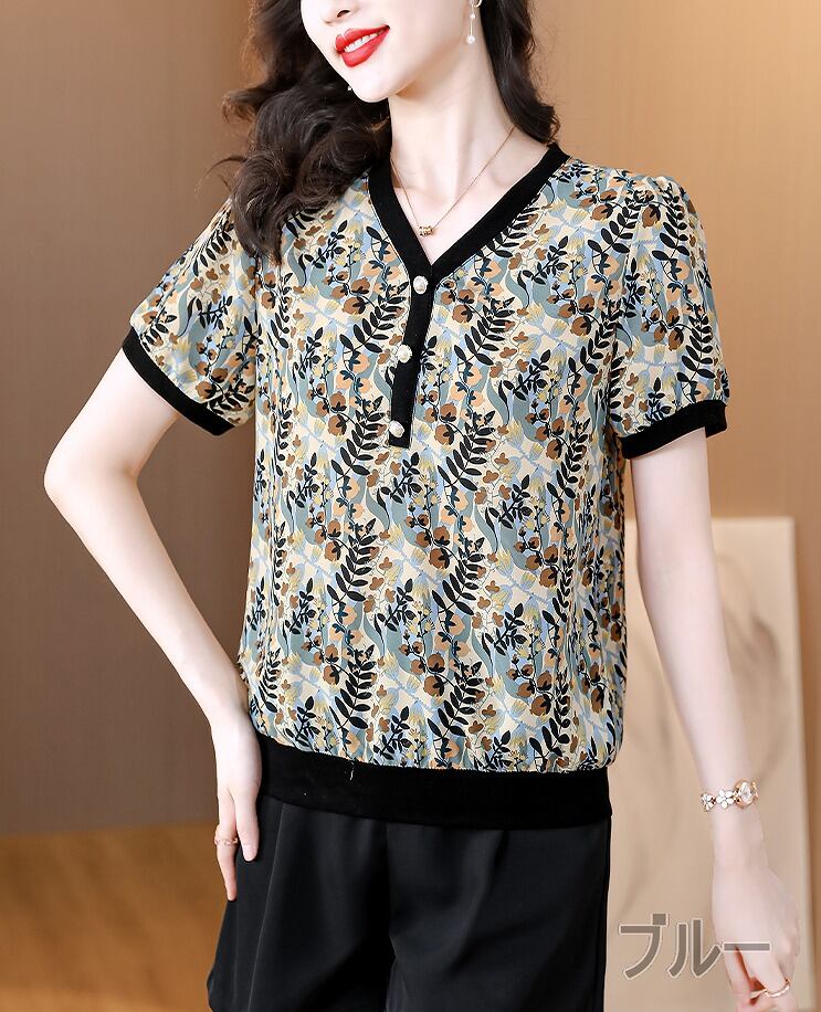 【大きいサイズL-5XL】【春夏新作】ファッショントップス♪ブルー/グリーン2色展開◆