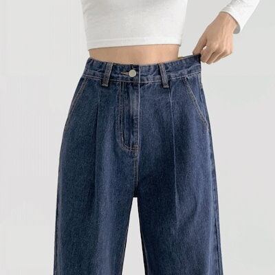 ~2XL[丈選択/起毛VER.]起毛 ピンタック バンディング ウォッシング 四季 ジーンズ ロングワイド デニムパンツ