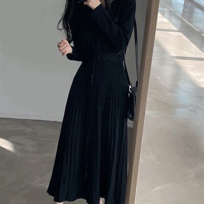 [シルエットが本当にきれいです!/+ウール含量] くびれ ニット ロング ワンピース - ops