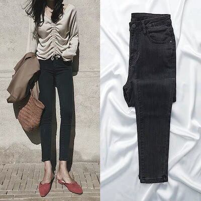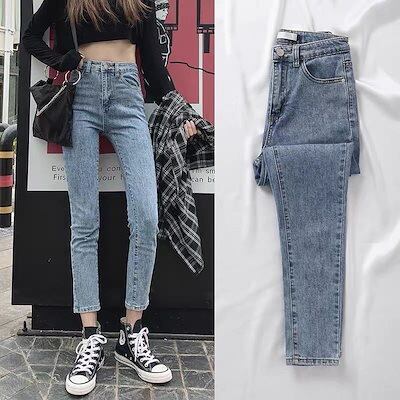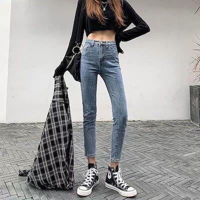 脚長効果!スキニーデニムパンツ ハイウエストジーンズ女性春夏弾性タイト2024新しいズボン