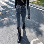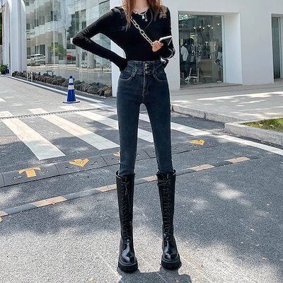 脚長効果!スキニーデニムパンツ ハイウエストジーンズ女性2024春夏新作ストレッチスキニーパンツ