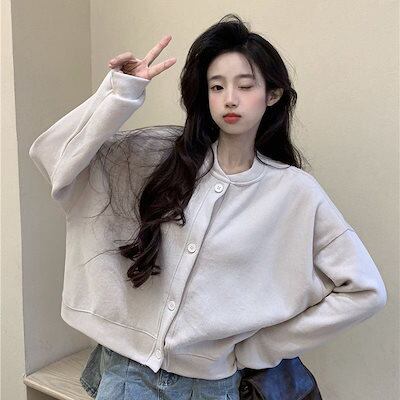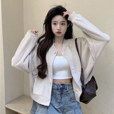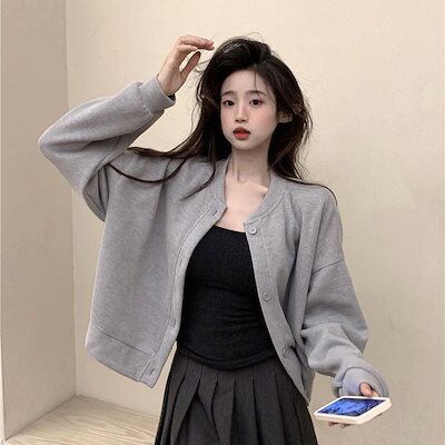 カーディガン 韓国ショートジャケット女性2024春新作ルーズカジュアルカーディガントップス