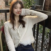 カーディガン シャツ 女性 春 韓国版 2024 新作 レース ショート セクション 長袖 カーディガン