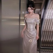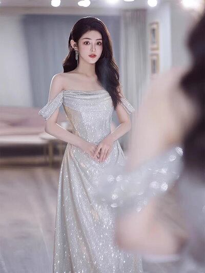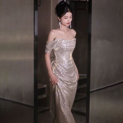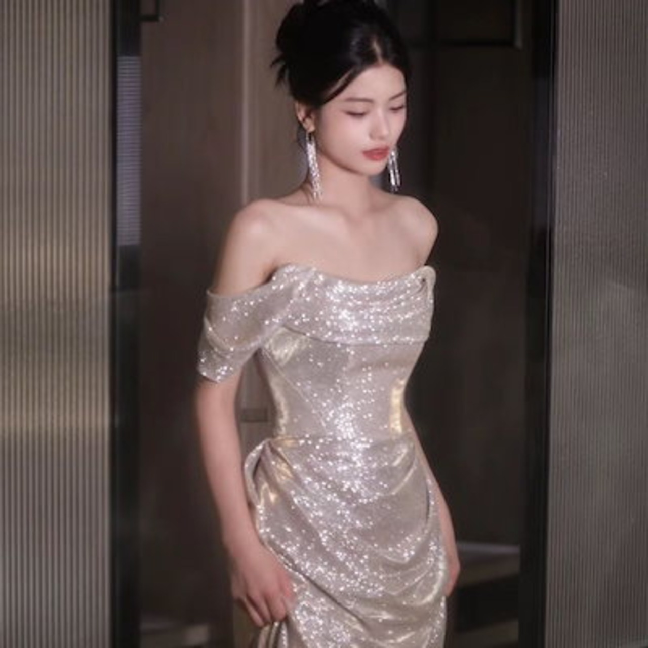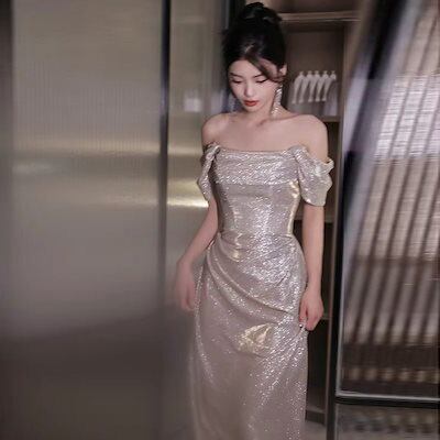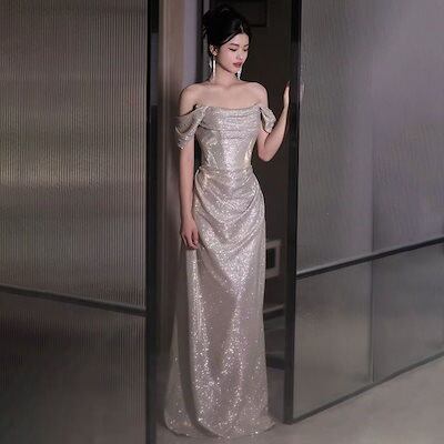 パーティードレス イブニングドレス女性2024新しい宴会気質バーミツバーホストドレス