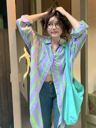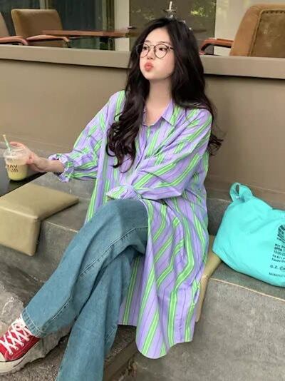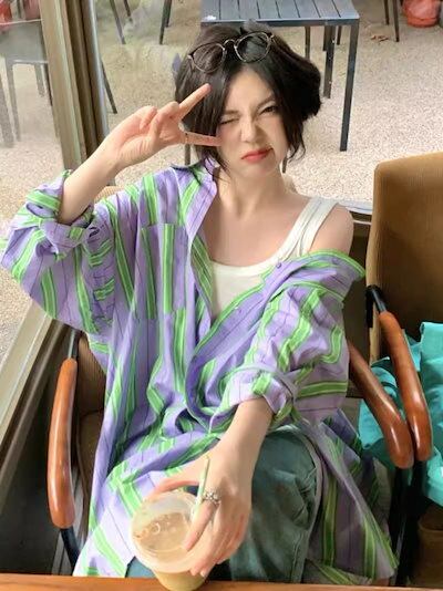 ブラウス 春と夏の新しいロングストライプシャツ日焼け止め長袖シャツジャケット女性薄いセクション