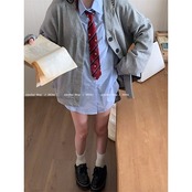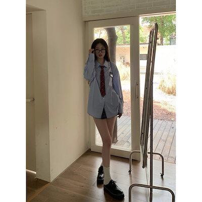 ブラウス 長袖タイシャツ女性春秋韓国ブルーブラウストップス