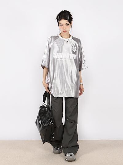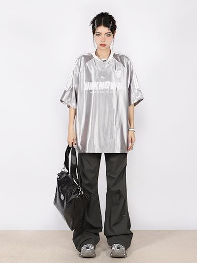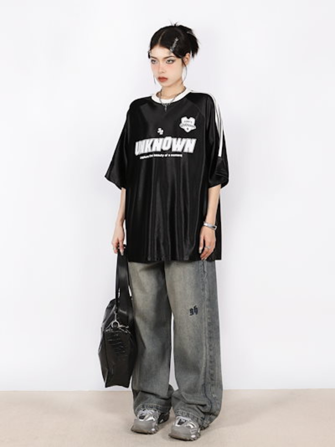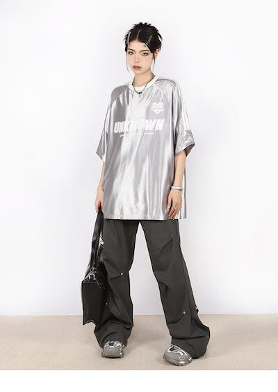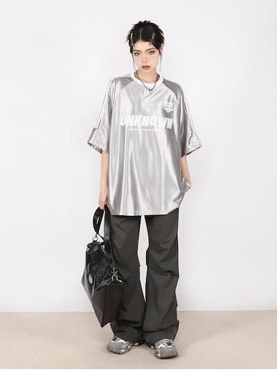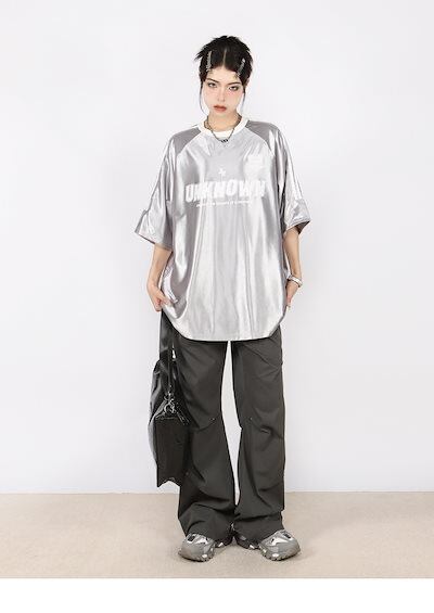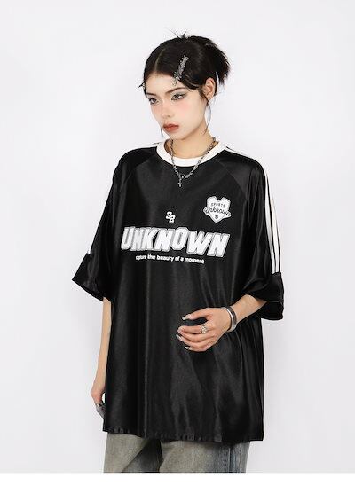 2024夏 韓国可愛い風トップス Tシャツ ファッション 半袖 スリムフィット サイド ペイントシルエット ゆったり丈 休日レディースサイズ韓国Vネック おしゃれ カジュアル メンズライク T | DOKO-ME