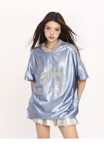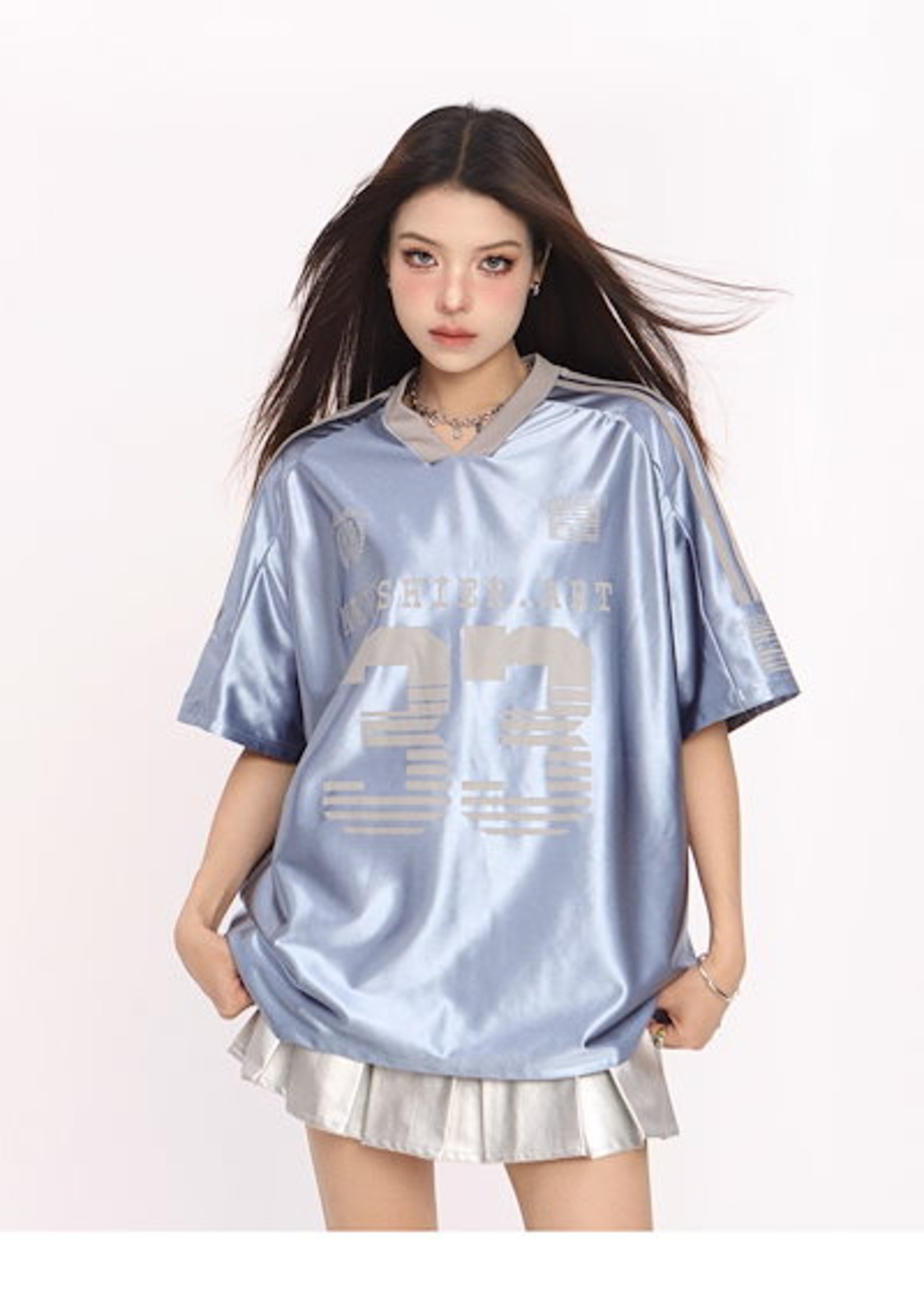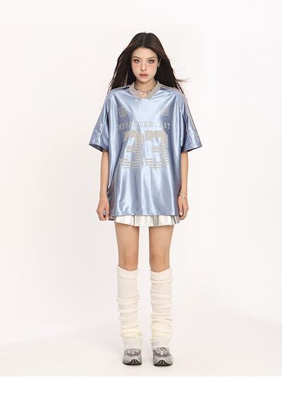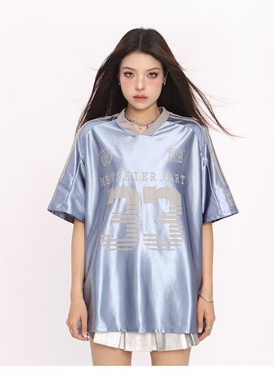 2024 夏 韓国 可愛い風トップス Tシャツ ファッション 半袖 スリムフィット サイド ペイントシルエット ゆったり丈 休日レディースサイズ韓国Vネック おしゃれ カジュアル メンズライク T | DOKO-ME