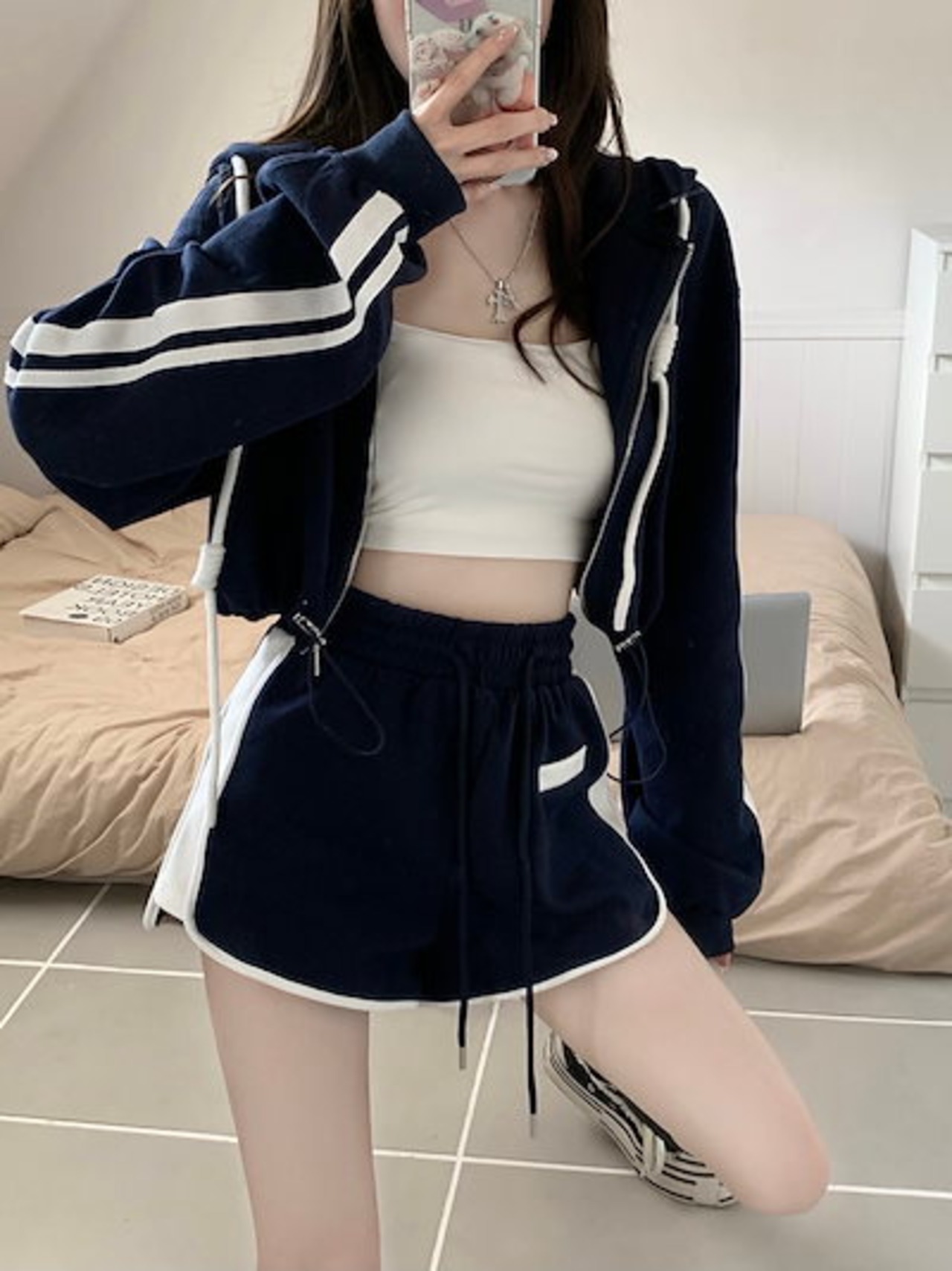 2024 秋 上下2点セット トップス お出かけ 羽織り ショート丈フルラウンドヘム ミニ丈ボトムス ストレート系冬 ゆったりレディースハーフスタイルアップワイドお出かけトラック