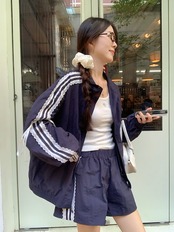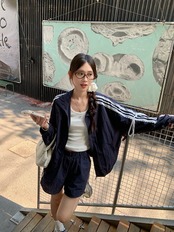 2024 秋 上下2点セット トップス お出かけ 羽織り ショート丈フルラウンドヘム ミニ丈ボトムスサイズストレート系冬 ゆったりレディースハーフスタイルアップシルエットワイドお出かけトラック | DOKO-ME