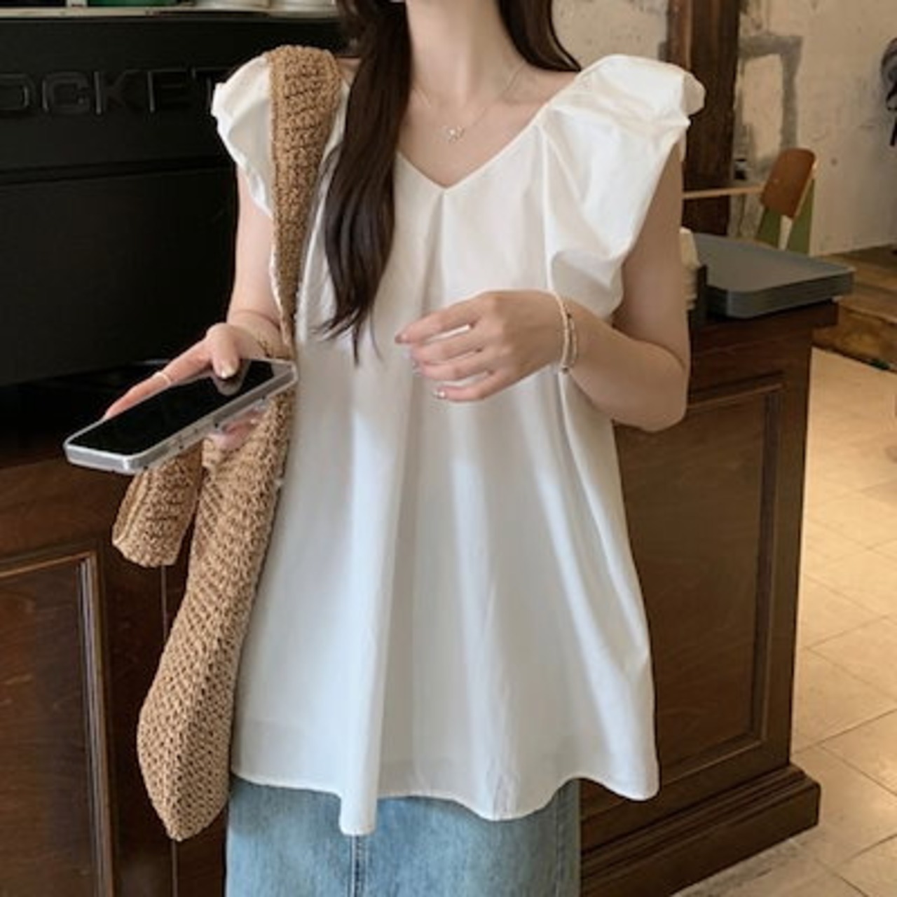 2024夏トップス シャツ リボン 半袖 Vネック 丈長め ゆったり 細見え 夏 白 黒 おしゃれ かわいい ガーリー キュート 甘め 韓国ファッション レディース お出かけ