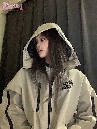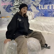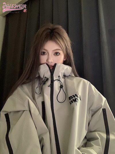 スタイルアップ シルエット フーディー ロゴ ブルゾン アウター フード付き レディース パーカー サイズ ゆったり ライク カジュアル ストリート フル ファッション カジュアル 夏秋冬 かわいい | DOKO-ME