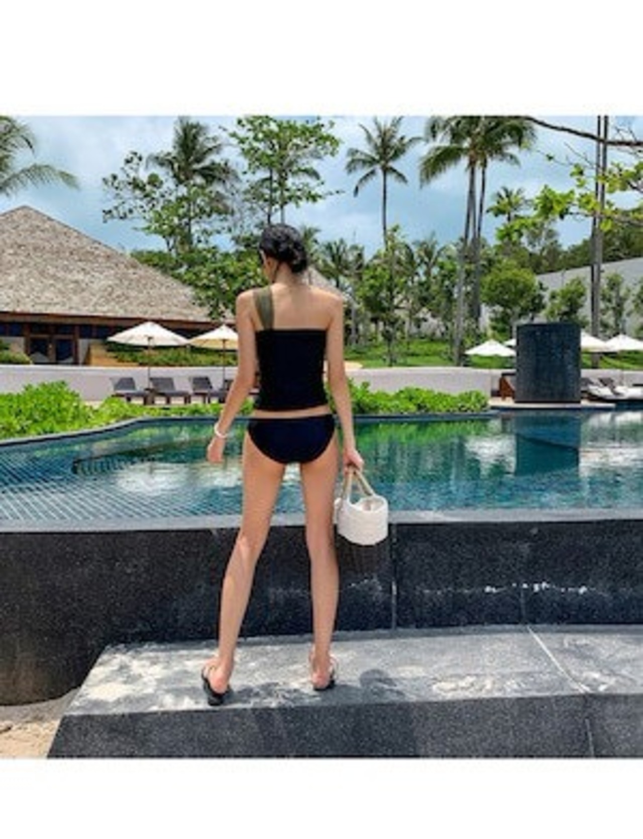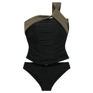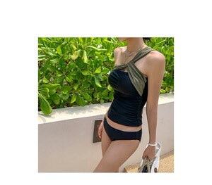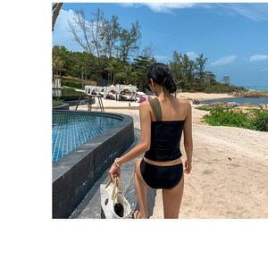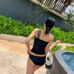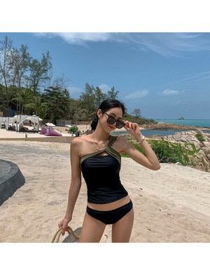 タンキニ ワンショル ワンショルダー 着痩せ シンプル バイカラー カッコイイ クール シック セクシー レトロ 股上浅め スタイリッシュ 可愛い 大人 お姉さん イイ女 スタイルアップ モテ レディ | DOKO-ME