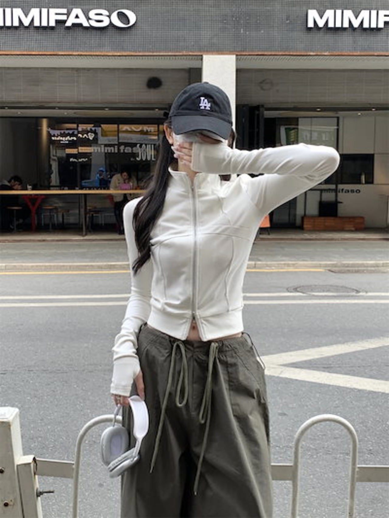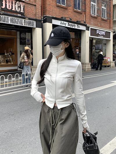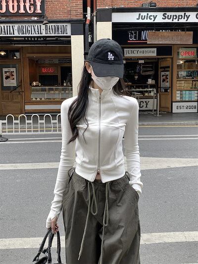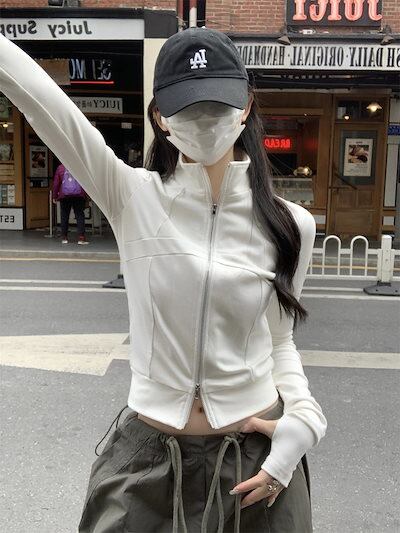 2024秋 アウター ショート ブルゾン かわいい フル ブルゾン トップス ハイ スタンド ショート ストリート レディース 長袖 カジュアル ファッションお出かけトラック