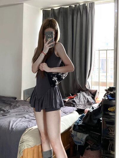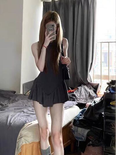 2024 春夏ワンピース ノースリーブ ラウンドネック ミニ丈 Aライン レトロ プリーツ 細見え 夏 おしゃれ かわいい 甘め キュート ラブリー 韓国系ファッション レディース お出かけ | DOKO-ME