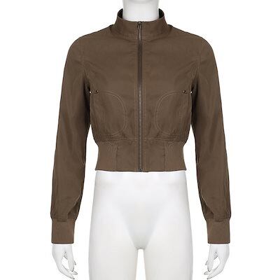2024夏秋 ブルゾン レトロ かわいい フル トップス ショート アウター レディース長袖 セクシートップスカジュアル韓国 系ファッションお出かけトラックハイネック丈 スタンドネック冬 | DOKO-ME