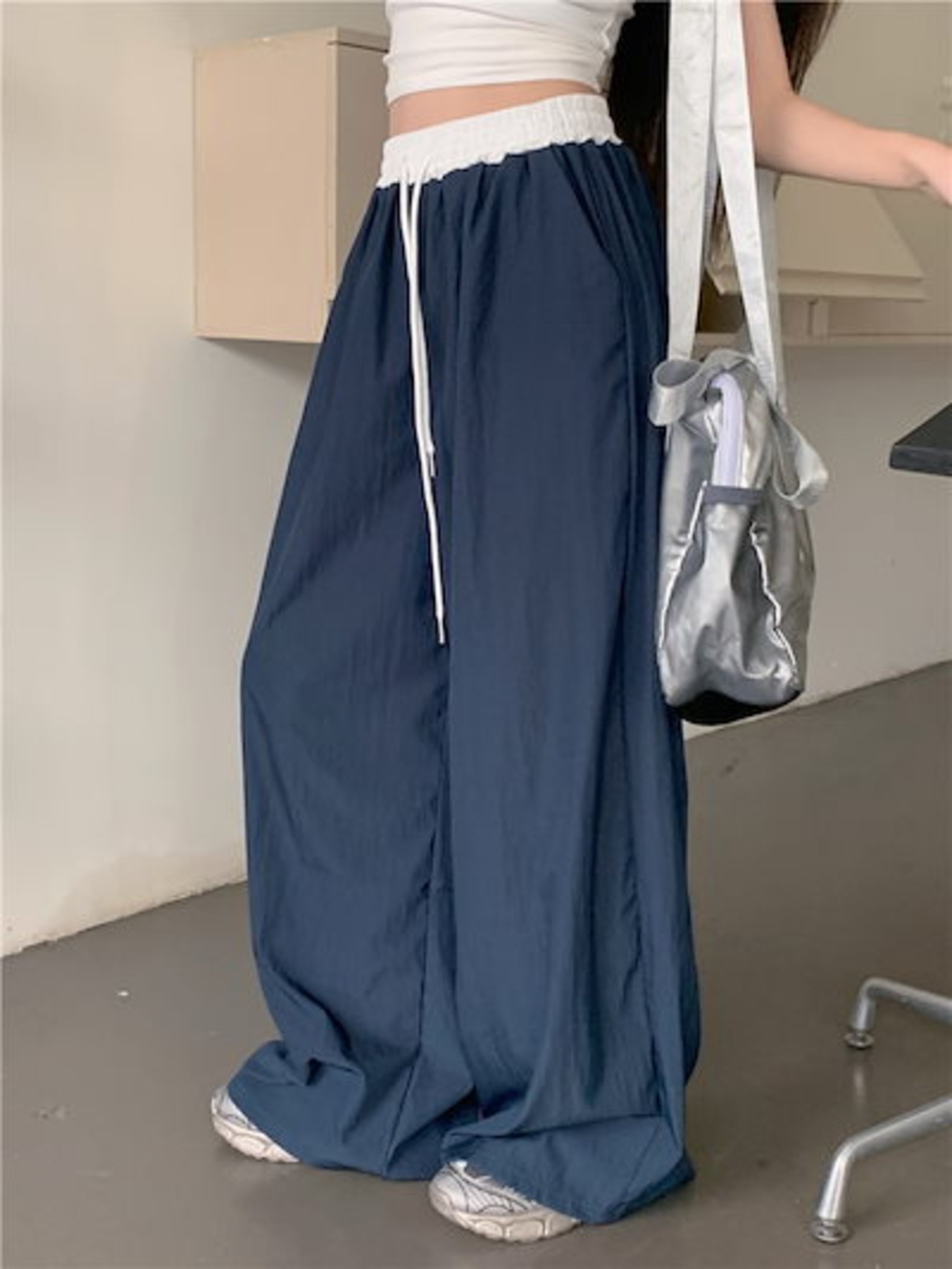 2024 春夏パンツ モップパンツ ロング丈 ワイド ハイウエスト 美脚効果 脚長効果 細見え 夏 青 黒 おしゃれ かわいい 韓国ファッション レディース お出かけ