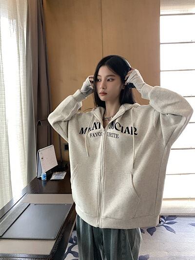 2024 秋冬トップスかわいいパーカーフード付き韓国風長袖ゆったり細見え白黒おしゃれレトロチャッシルエット甘め大人っぽ韓国フルサイズファッション系ルーズレディースサイド袖お出かけ学生通学トラック羽織り | DOKO-ME