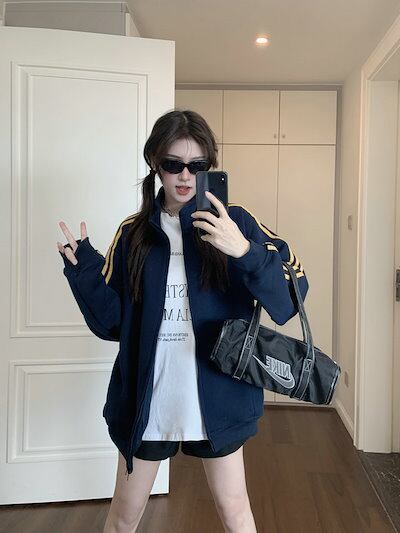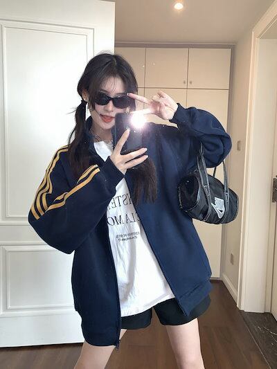 2024 秋冬トップスかわいいパーカー ハイネック韓国風長袖ゆったり細見え白黒おしゃれレトロチャッシルエット甘め大人っぽ韓国フルサイズファッション系ルーズレディースサイドお出かけ学生通学トラック羽織り | DOKO-ME