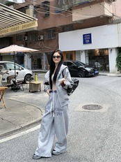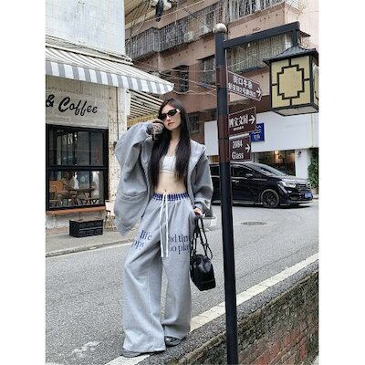 2024 秋冬 韓国 かわいい レディース 無地 フード付き長袖アウターレトロセット黑白フーディーブルサイズ丈トップス春カジュアルスポーツファッション系通学学生袖お出かけアップシルエットトラック | DOKO-ME