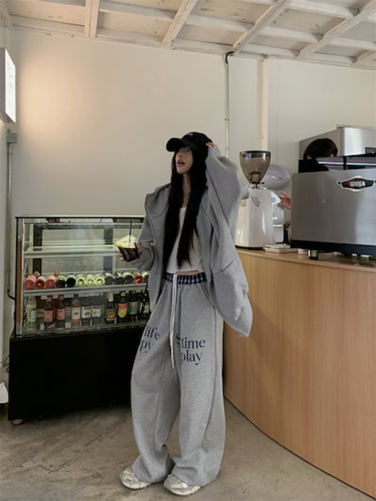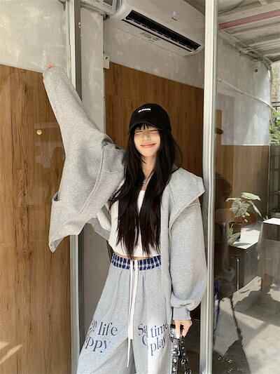 2024 秋冬 韓国 かわいい レディース 無地 フード付き長袖アウターレトロセット黑白フーディーブルサイズ丈トップス春カジュアルスポーツファッション系通学学生袖お出かけアップシルエットトラック羽織り | DOKO-ME