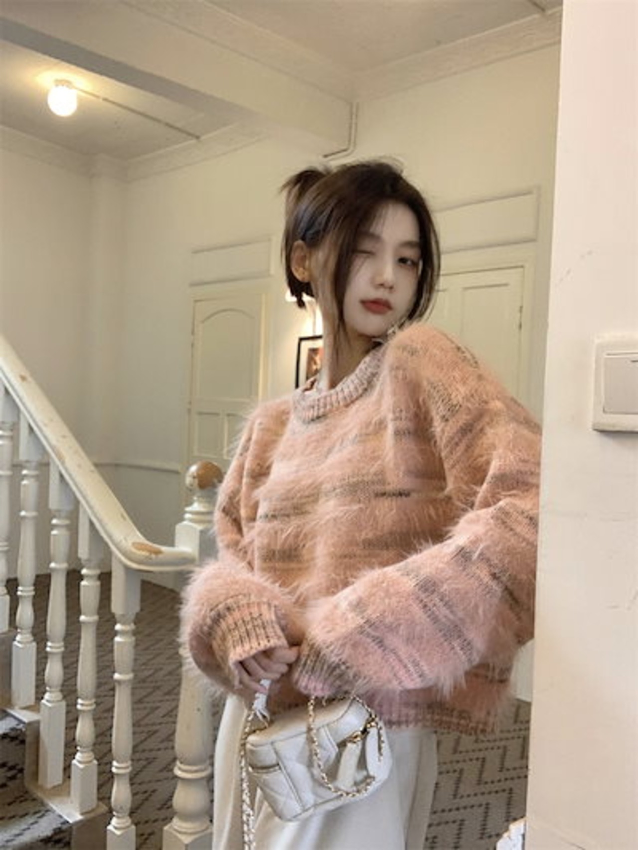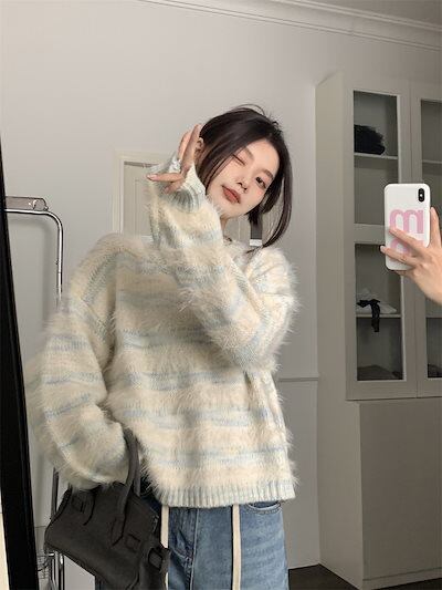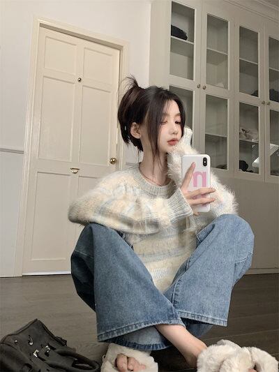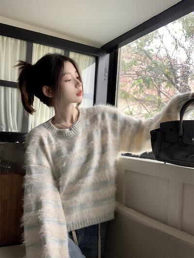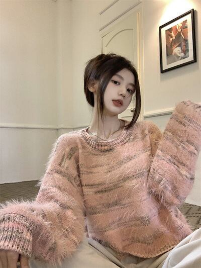 2024秋冬トップス 長袖 ニット セーター レディース ショート おしゃれ韓国ロンT色っぽ 女っぽスタンド 春カラースタイルアップハイカジュアルきれいめV大人ファッション加工フェミニン かわいい
