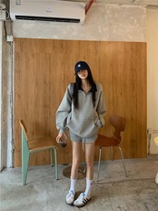 2024 秋冬 トレンド トップス長袖 かわいいK-POPTロング黑白レディース韓国風ロゴ衣装カラールーズゆったりカジュアルハーフおしゃれサイズスリーブシルエットファッション系サイドシャツフット春 | DOKO-ME