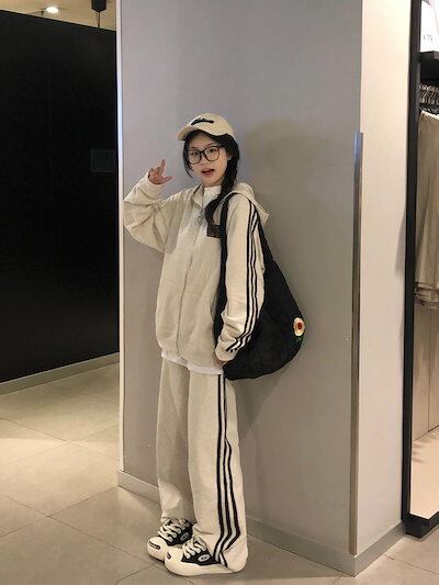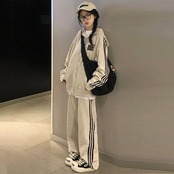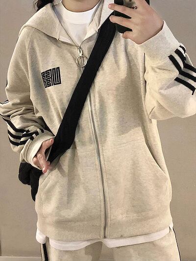 2024 秋冬 2点セット トップス お出かけフード付き 羽織り ショート丈 セットアップフルパーカー ルーズ サイド上下ボトムス ストレート系冬 ゆったりサイズワイドシルエットリラックストラック | DOKO-ME