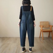 デニムサロペット 韓国ファッション コントラストカラー 2024 春秋 新作 ゆったり 9分丈パンツ ワイドパンツ レディース オールインワンパンツ