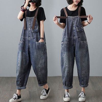 2024 春夏秋 サロペット デニムボトムス ショットパンツ デニム ストレート ロングパンツ ワイドパンツ 韓国ファッション オーバーオール ゆったり 着やせ 個性デザイン 母の日のプレゼント | DOKO-ME