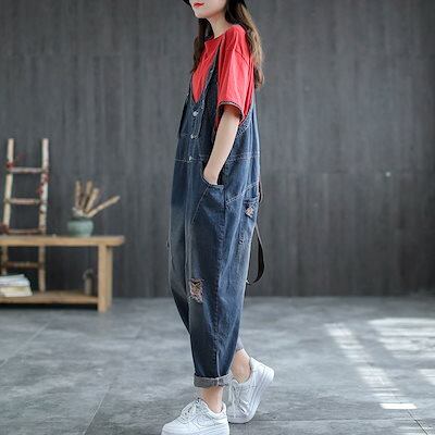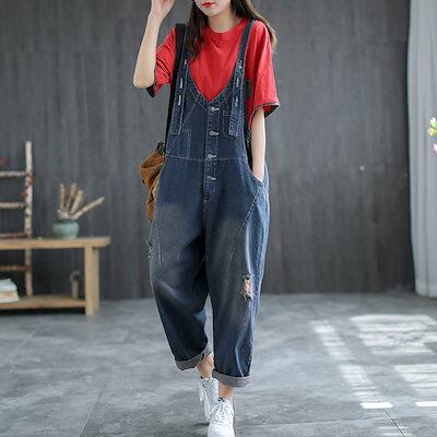 2024 トレート 春夏秋 デニムボトムス ショットパンツ デニム サロペット スロングパンツ ワイドパンツ 韓国ファッション オーバーオール ゆったり 着やせ 個性デザイン 母の日のプレゼント | DOKO-ME