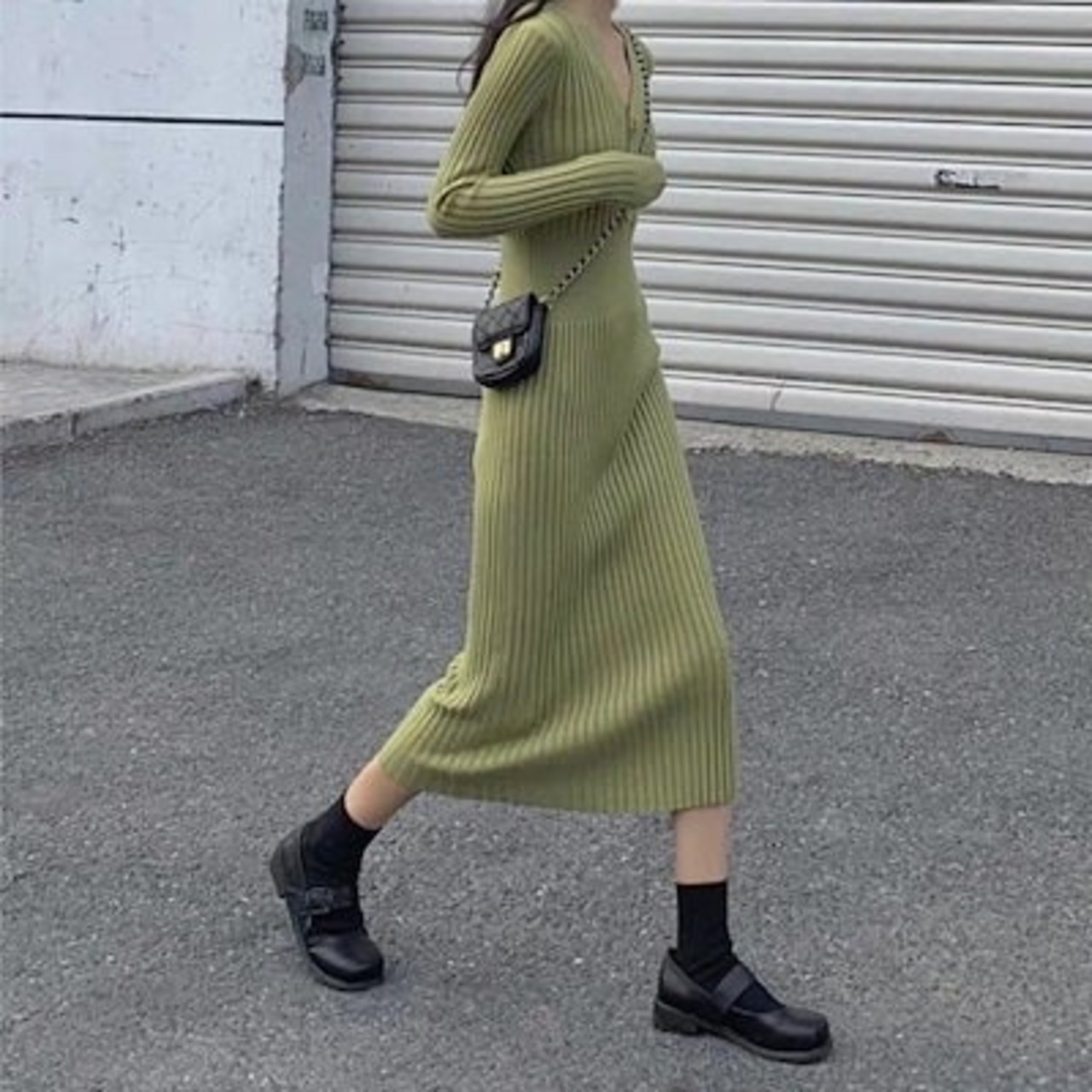 ニットワンピース2023年秋冬新作ファースカートロングコートウエストワンピースニットワンピース冬のワンピース