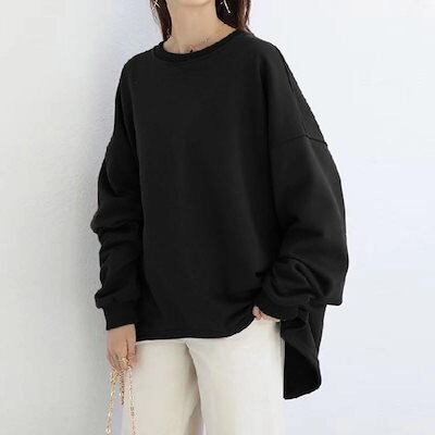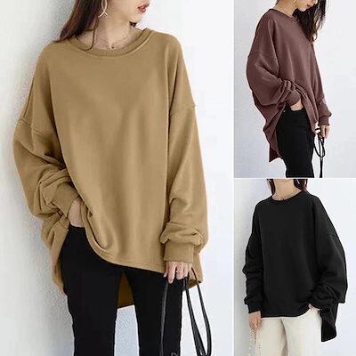 秋服 大きいサイズ カジュアル 怠惰な風 着痩せ 体型カバー スウエット トップス 丸ネック シンプル 百掛け