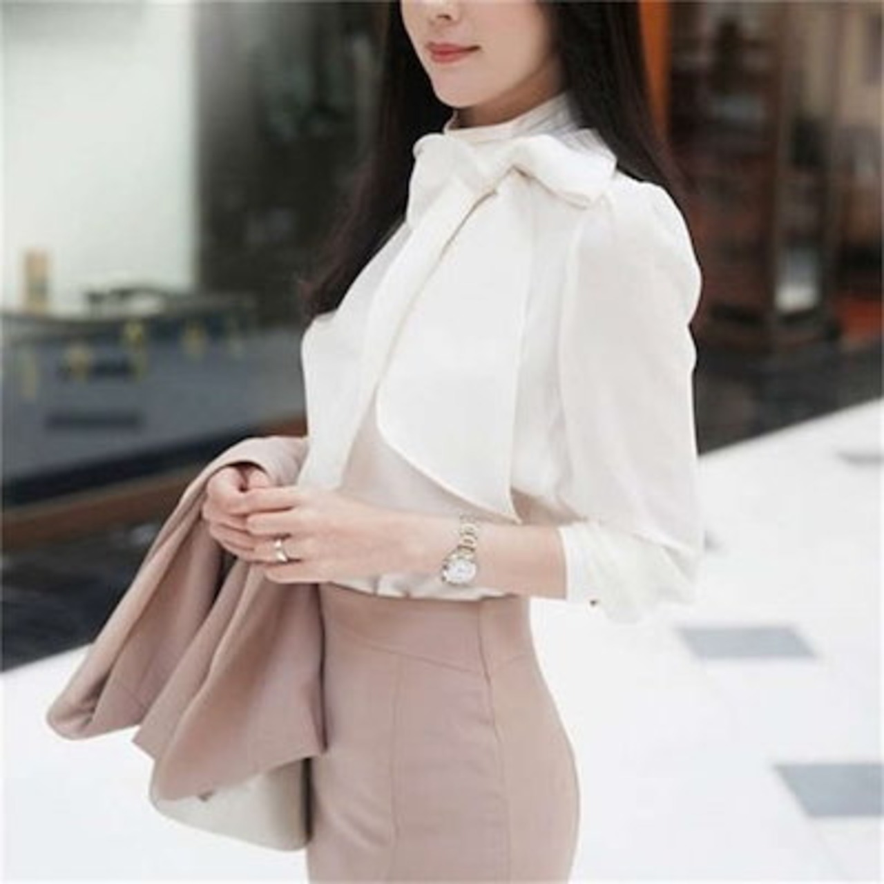 ブラウス シャツ インナー レディース トップス ボウタイカラー スーツインナー ビジネススーツ 白シャツ 春夏 秋冬 長袖 ボウタイ ボウタイブラウス リボン リボンタイ ボウタイリボン 上品 きれ | DOKO-ME