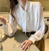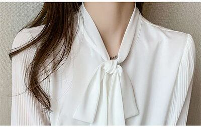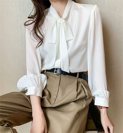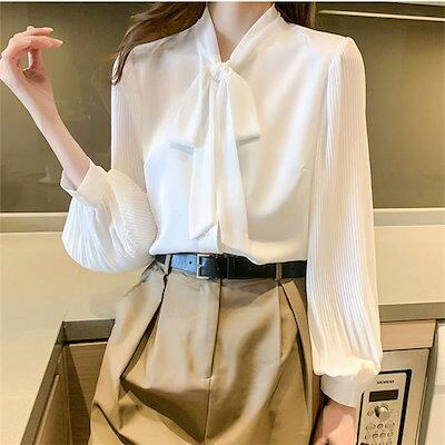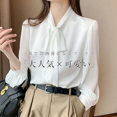 ブラウス フォーマル リボン ボウタイブラウス レディース 白 長袖 シャツ 春秋 大人 きれいめ お洒落 通勤 オフィス ビジネス スーツインナー シンプル とろみ 薄手 エレガント フェミニン | DOKO-ME