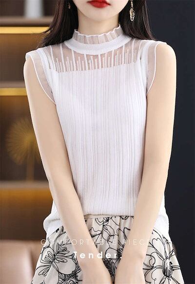 インナー ハイネック ノースリーブ 薄手 夏 カットソー トップス レース レディース タンクトップ 大きいサイズ ノースリーブカットソー スーツインナー ハイネックインナー 肌着 下着 洗える 重ね | DOKO-ME