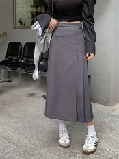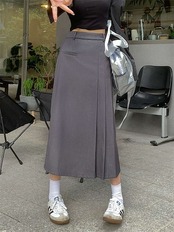 ロングスカート スカート レディース ボトムス ハイウエストスカート フレアスカート プリーツスカート スーツスカート ハイウエスト ロング丈 ロング マキシ丈 無地 シンプル 体型カバー 美脚 シワ | DOKO-ME