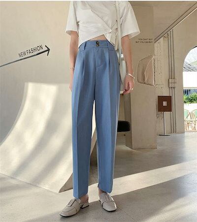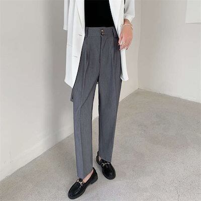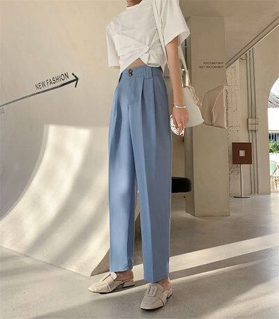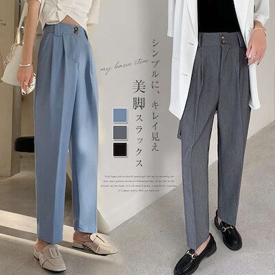 パンツ レディース ボトムス スラックス 長ズボン ストレート スーツ 春 夏 無地 ロング丈 パンツ タック シンプル フェイクポケット ハイウエスト スーツパンツ 細見え きれいめ おしゃれ カジ | DOKO-ME