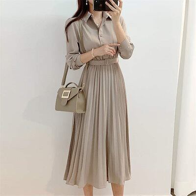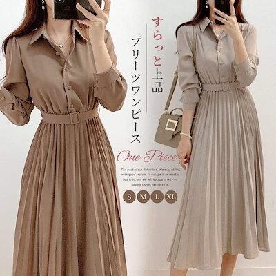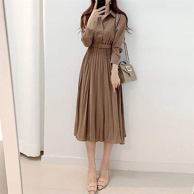 ワンピース プリーツ レディース ワンピーススーツ シャツワンピース 上品 ドレス 春 夏 秋 長袖 切替 プリーツワンピース Aライン シンプル ウエストマーク ロングワンピース きれいめ 上品 フ | DOKO-ME