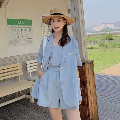 【人気】 夏 スーツセット 上下2点 スーツコート+ショートパンツ レディース セットアップ カジュアル スーツ 通勤 体型カバー