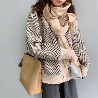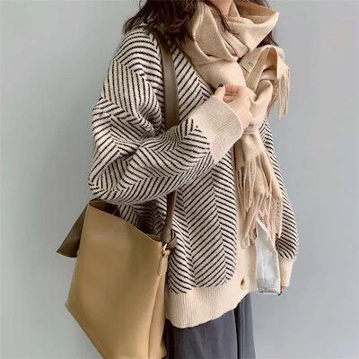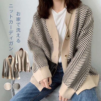 ニットカーディガン レディース ゆったり 服 トップス ショート丈 ふわふわ ニット カーディガン 厚手 オフィス アウター 長袖 スクール 大きいサイズ ストライプ 可愛い おしゃれ 暖かい | DOKO-ME