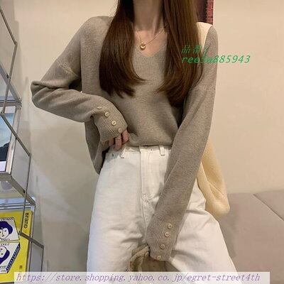 トップス ニット Vネック セーター 長袖 ドロップショルダー カットソー 通勤 白 ベージュ 黒 おしゃれ ブラック きれいめ カジュアル ホワイト レディース ブ