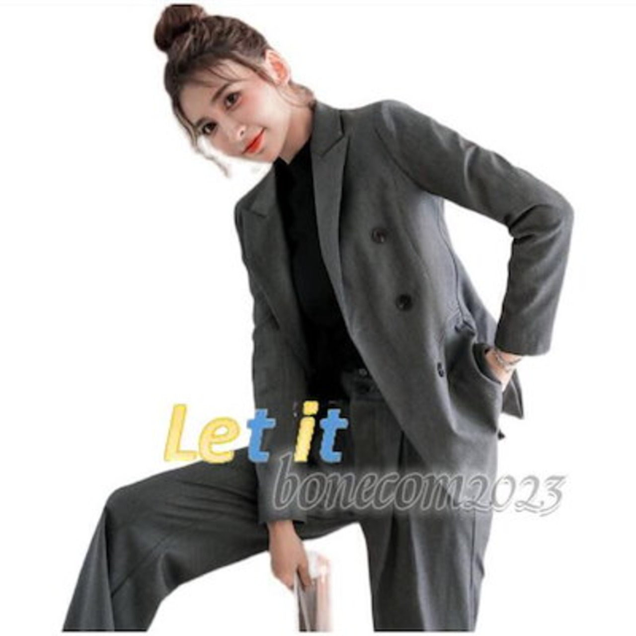卒園式スーツ レディース 春 秋 夏 パンツスーツ ストレッチ 長袖 ロング丈 洗える セットアップ ビジネススーツ リクルート 通勤 OL 卒業式 グレー おしゃれ