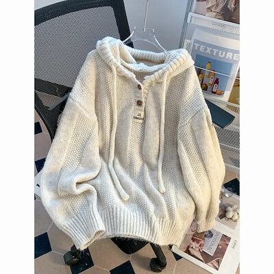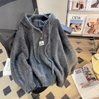 【2枚購入で3oo円OFF!】新作 カジュアル セーター フード付きゆったり ニットカーディガン トップス アウター ベーシックニット ラウンドネックニットカシミヤタッチ 福袋